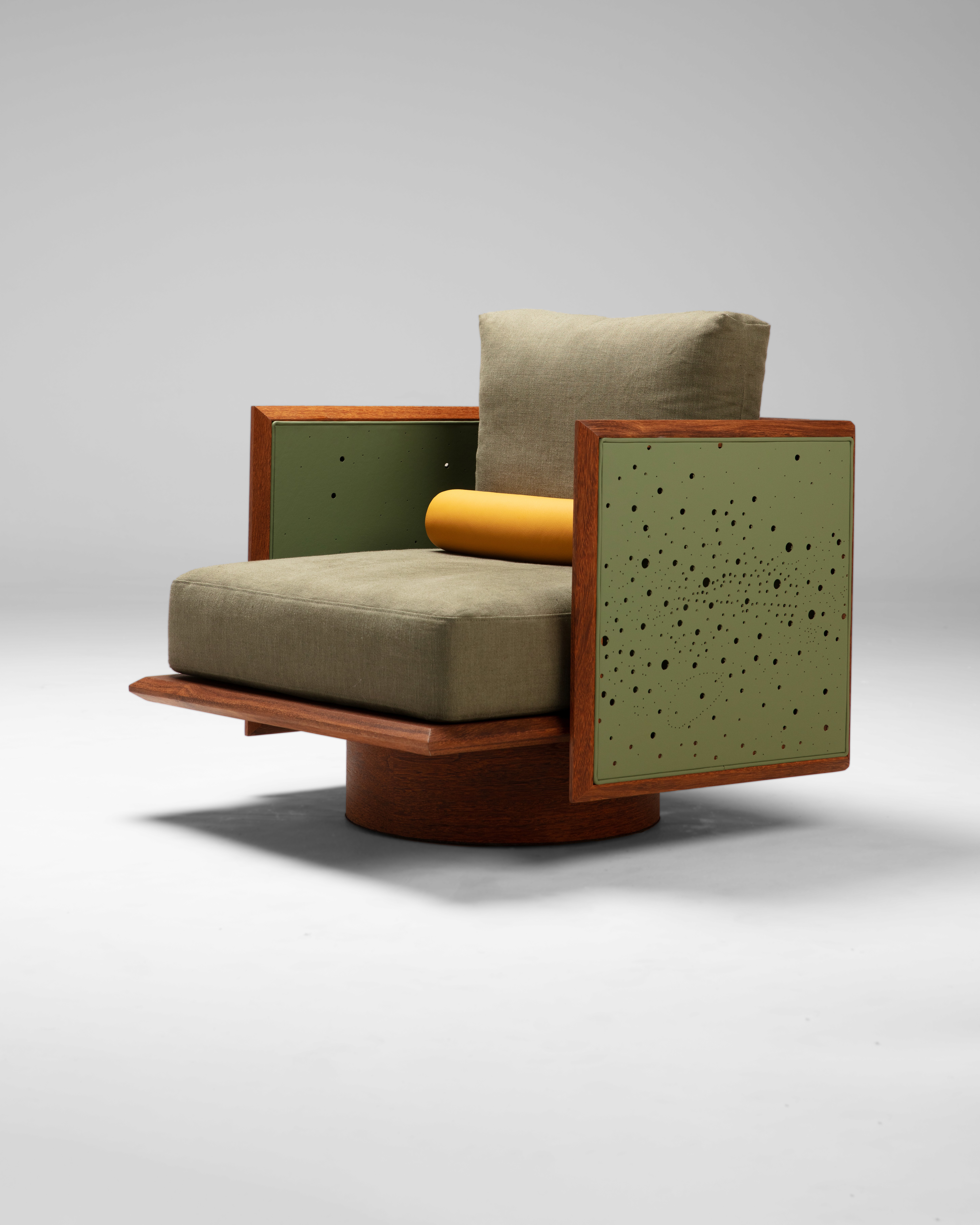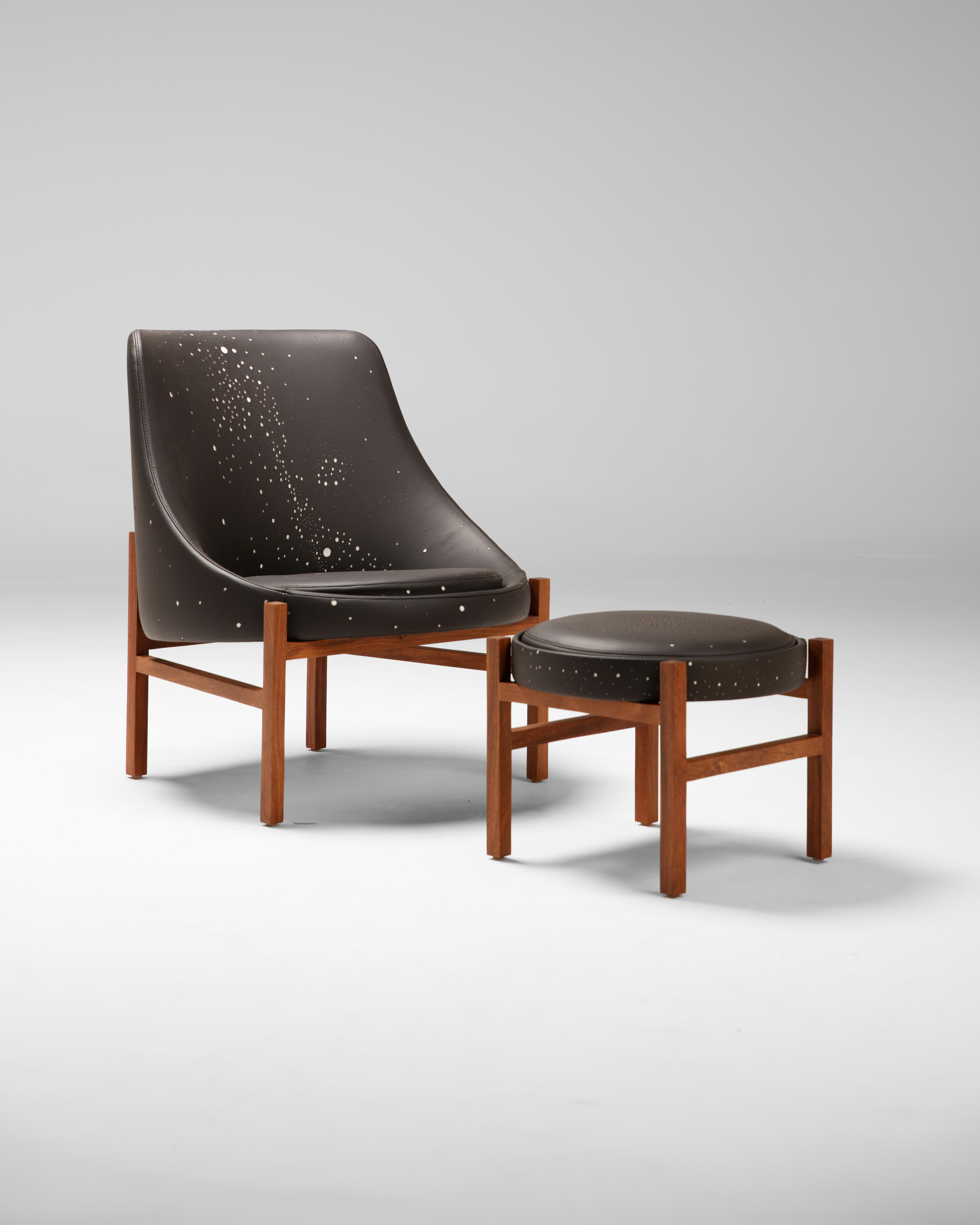 Cada peça da coleção é única, reforçando o caráter de edição limitada e aproximando o mobiliário do universo colecionável. Poltronas como Cabaça e Joaquim exploram profundidade por meio de couro perfurado, enquanto a cadeira Tati incorpora bordados que resgatam narrativas afetivas. Já o banco Mineral traz formas orgânicas que remetem a elementos naturais.