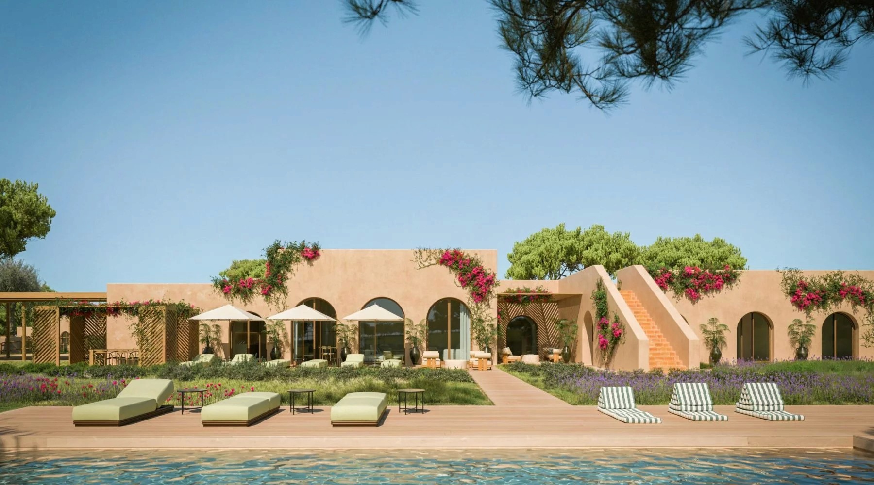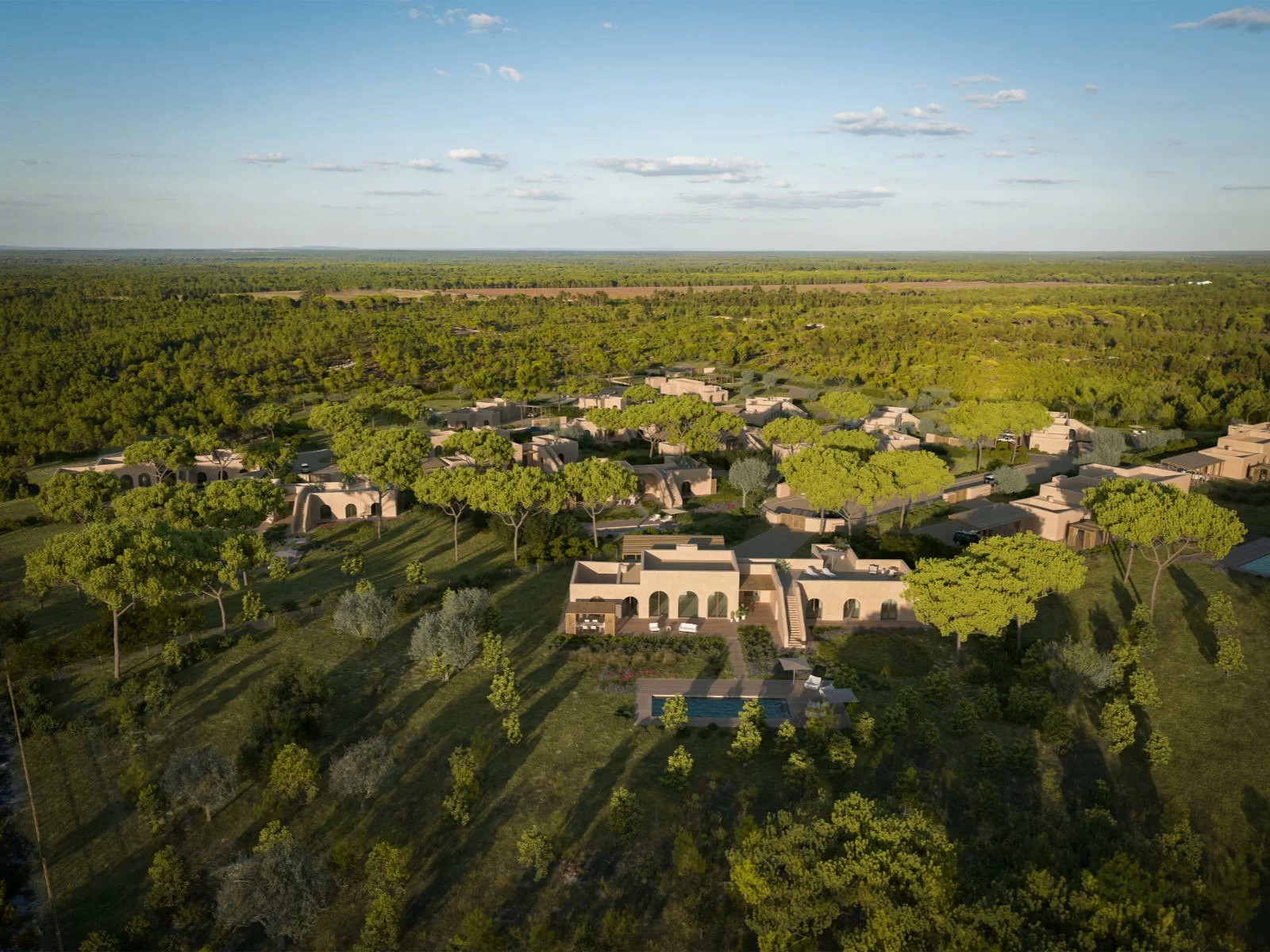 Nos arredores de Carvalhal, o Ando Living Comporta House introduz um conceito de villas com serviços. O empreendimento terá 16 villas com dois a cinco quartos, piscina privativa, terraço e jardim. O hotel também oferecerá concierge, chef sob demanda e lounge bar.