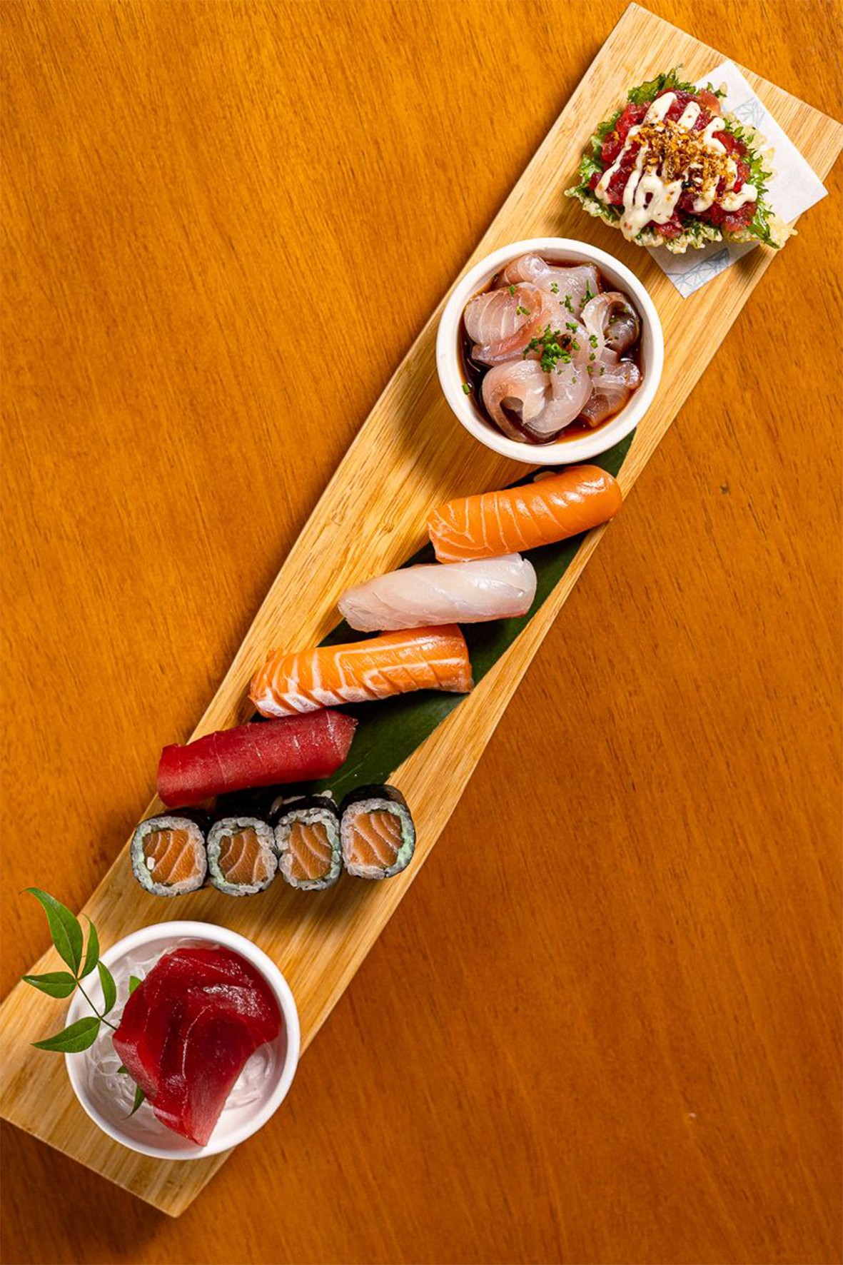 Referência em cozinha nikkei, o Imakay serve almoço executivo de segunda a sexta, exceto feriados. O menu inclui entrada, prato principal e sobremesa por R$109, ou prato principal e sobremesa por R$89. A experiência começa com Otoshi, seguido de opções como mini tirashi, tataki de atum, croquete de salmão ou ceviche de peixe branco. Nos principais, há opções do sushi bar, pratos quentes e carnes na parrilla, como o Gyuniku.