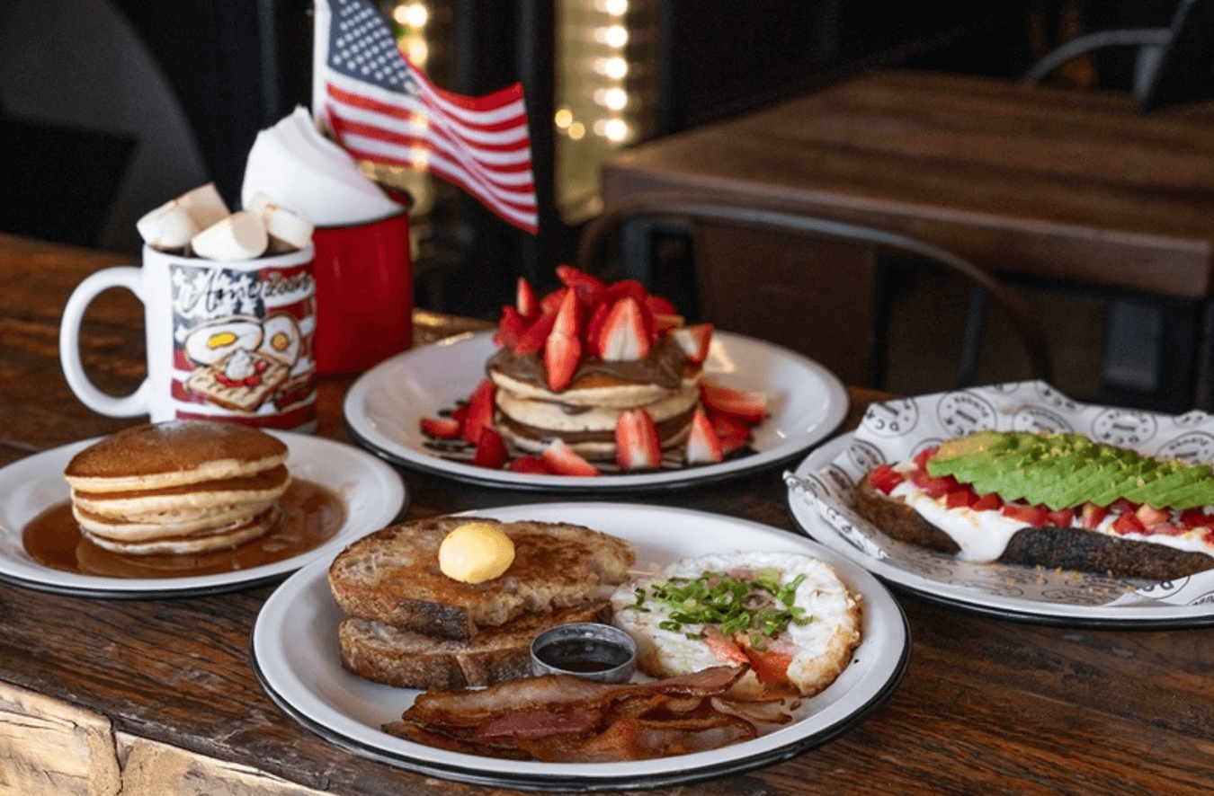 Para quem busca brunch com inspiração americana, o DCK Burger serve o American Breakfast aos fins de semana e feriados, com waffles, panquecas, ovos, avocado toast e pratos clássicos.