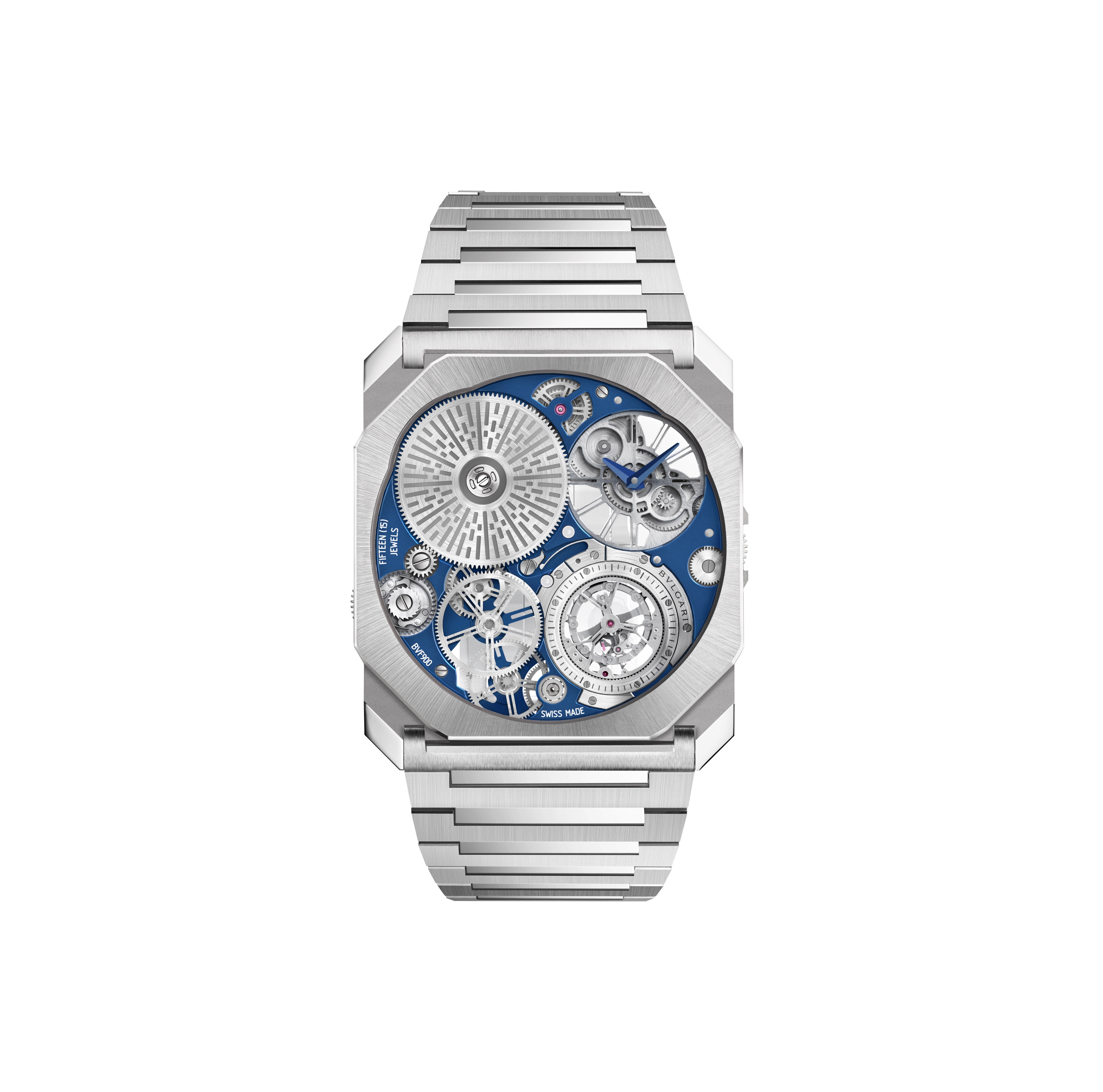 O destaque está no novo Octo Finissimo 37 mm, equipado com o calibre automático BVF 100, desenvolvido internamente. O movimento ultrafino mede 2,35 mm de espessura e oferece reserva de marcha de 72 horas. O modelo reduz em 20% o volume em relação à geração anterior, mantendo desempenho e precisão.
