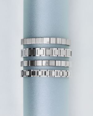 As linhas Essential Links e Parallel seguem a mesma estética minimalista, com elos retangulares, placas geométricas e aplicação discreta do logo Calvin Klein. Desenvolvidas em aço inoxidável hipoalergênico, as peças foram pensadas para uso diário, mantendo coerência com o posicionamento da marca.