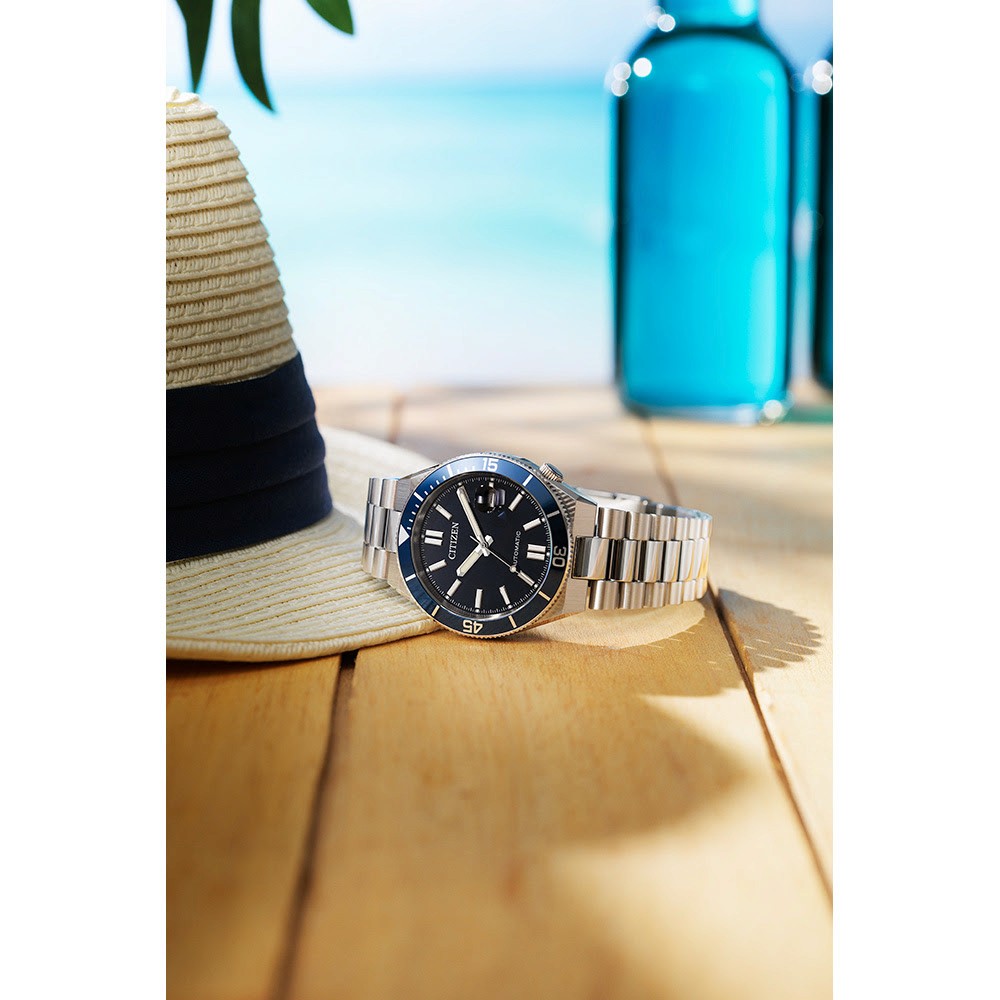 Na mesma linha, a coleção Tsuyosa Shore chega com movimento automático calibre 8210. O modelo NJ0230-59L possui mostrador azul e pulseira em aço inoxidável, com preço sugerido de R$ 4.490,00. O NJ0232-53X apresenta mostrador verde e acabamento em aço inoxidável, com valor de R$ 4.990,00. Ambos oferecem reserva de marcha de aproximadamente 40 horas e resistência à água de 100 metros.