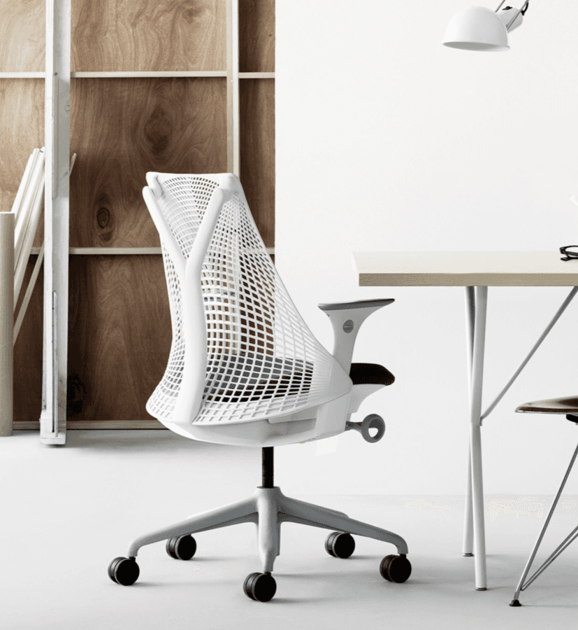 No universo do trabalho e do home office, a Herman Miller apresenta a Cadeira Sayl Branca, assinada por Yves Béhar. O projeto se inspira nos princípios de engenharia da Ponte Golden Gate e utiliza um encosto 3D sem estrutura rígida, permitindo maior liberdade de movimento e suporte à postura.