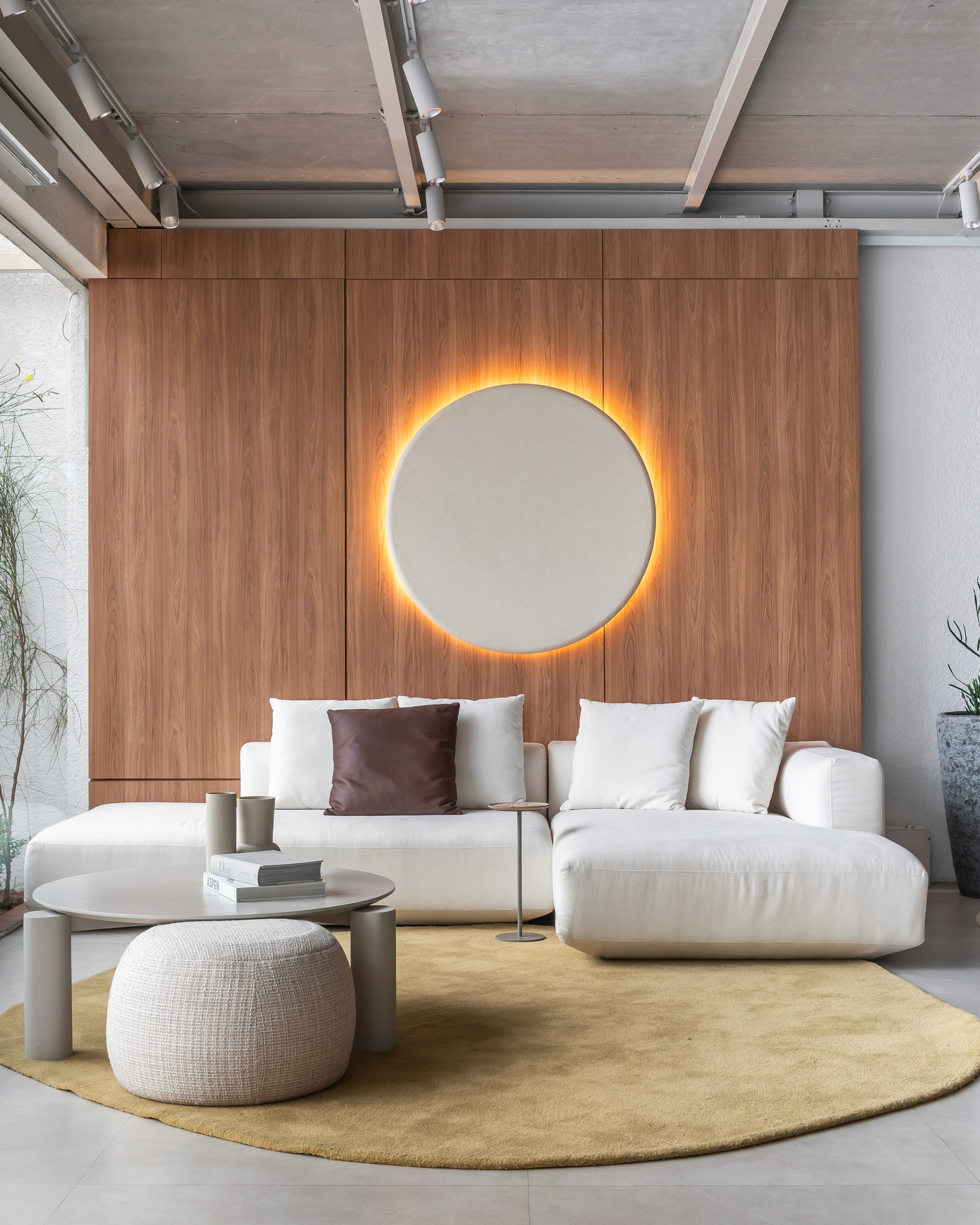 A curadoria também inclui a Luminária Golden Hour, inspirada na luz do entardecer. A peça atua como elemento de ambientação ao destacar texturas e volumes, colocando a iluminação como protagonista do espaço. Com linguagem contemporânea, transforma a relação entre luz, arquitetura e bem-estar.