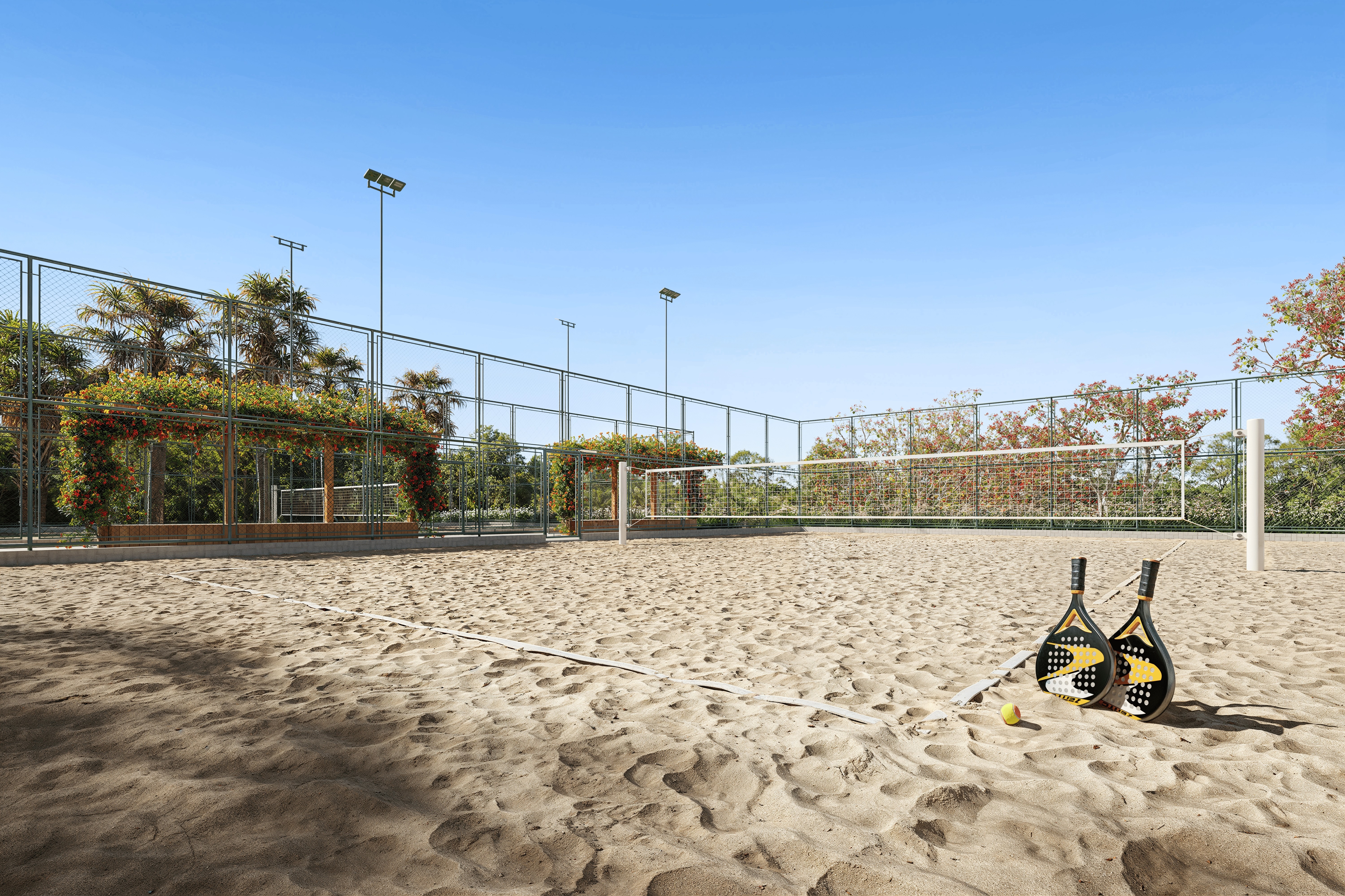 Entre as práticas em destaque está o beach tennis, um dos esportes que mais crescem no país. De acordo com a Confederação Brasileira de Tênis, o número de praticantes triplicou nos últimos anos, alcançando 1,1 milhão de pessoas. No Aldeia do Vale Pirenópolis, as quadras de areia fazem parte da área comum e se integram ao ambiente natural.