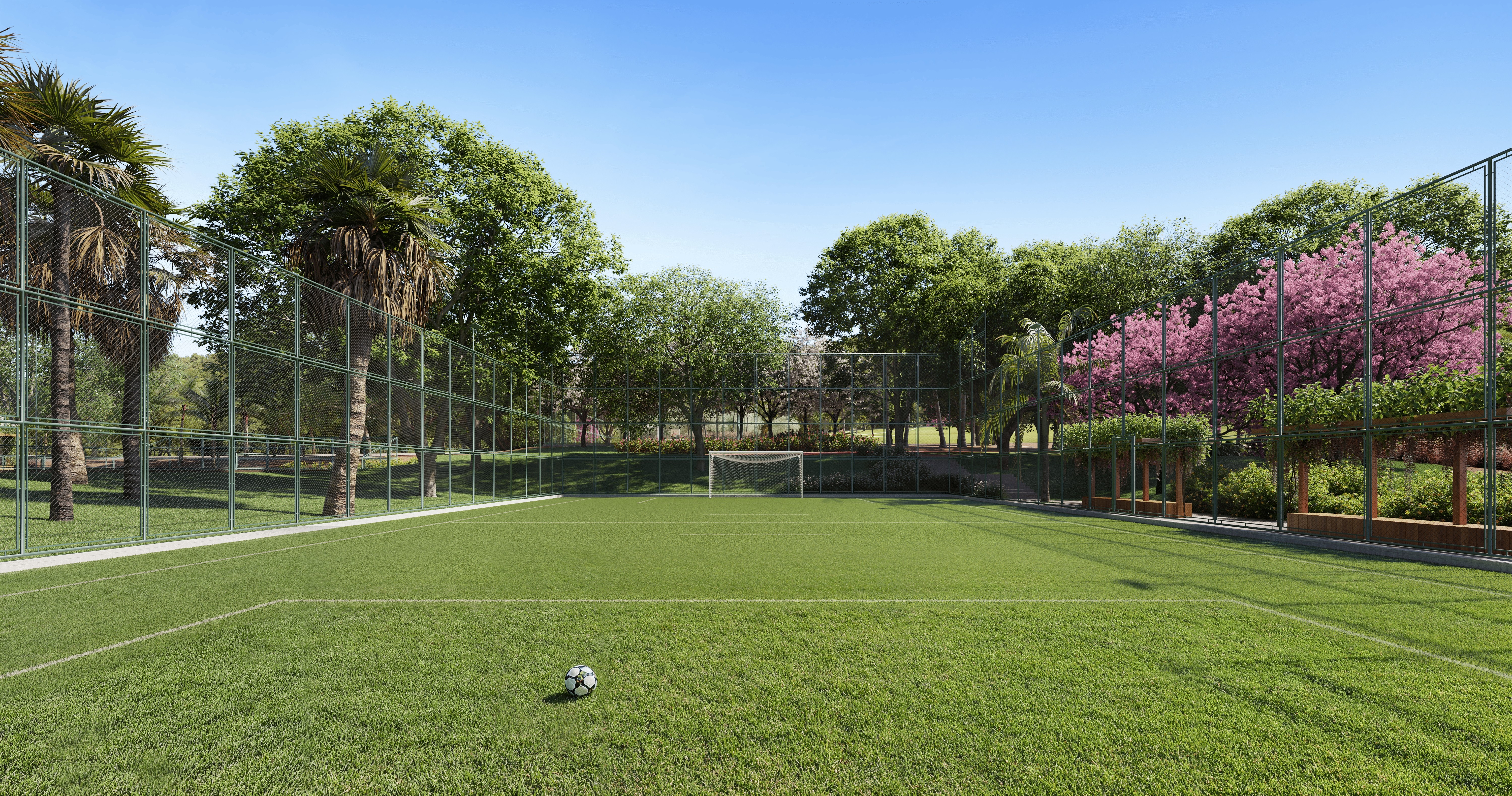 O futebol segue como elemento de integração social. No empreendimento, a prática ocorre ao ar livre, aos pés do Morro do Frota. O condomínio possui área total de 550 mil m², com aproximadamente 50,97% de área verde preservada.