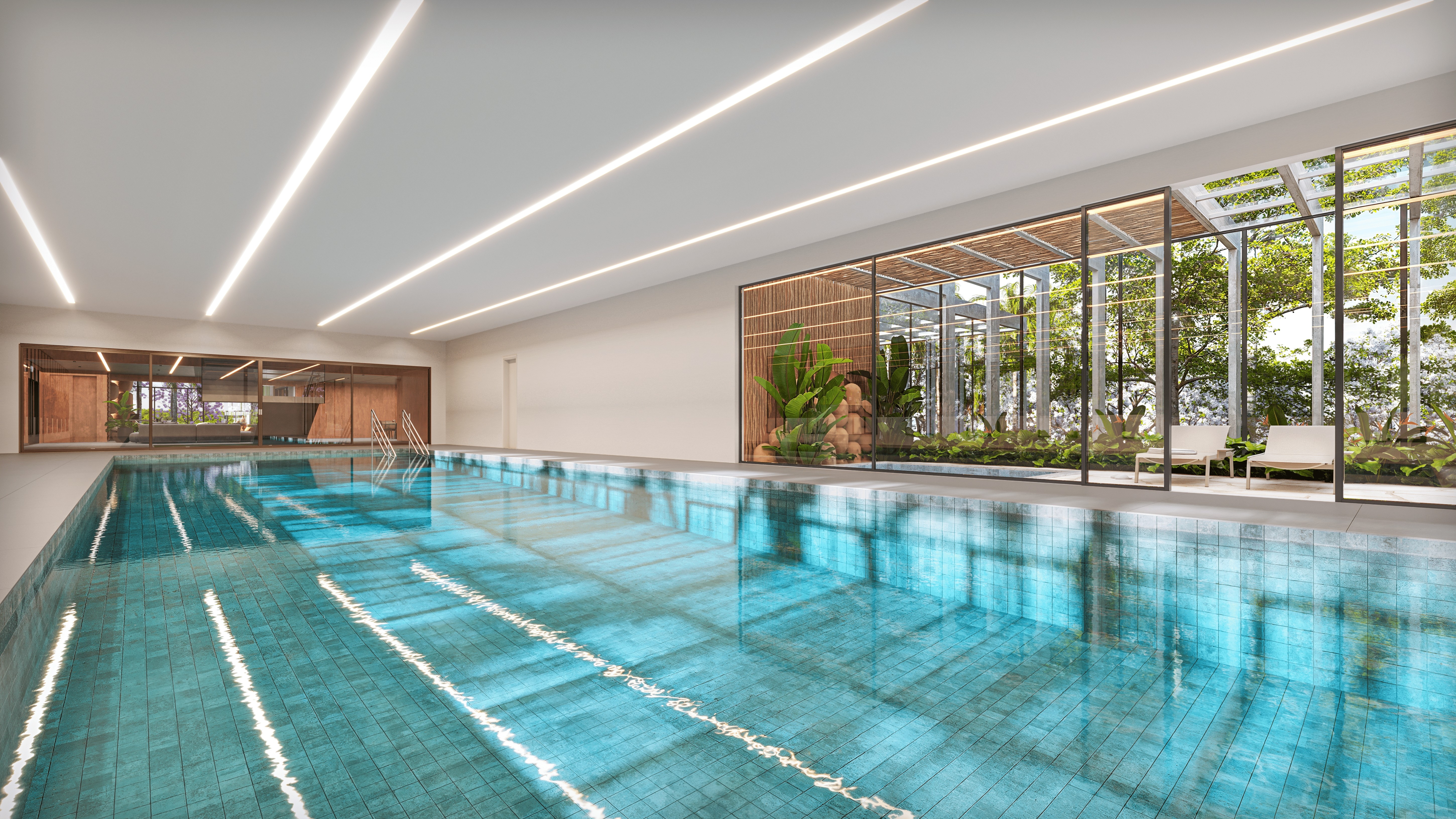 A natação permanece como prática relevante. Segundo artigo publicado na National Geographic Brasil, a modalidade contribui para tonificação e fortalecimento muscular, além de benefícios à saúde cardíaca, mental e respiratória. O Wellness Club conta com piscina indoor e piscina natural com borda infinita voltada para a área verde interna.
