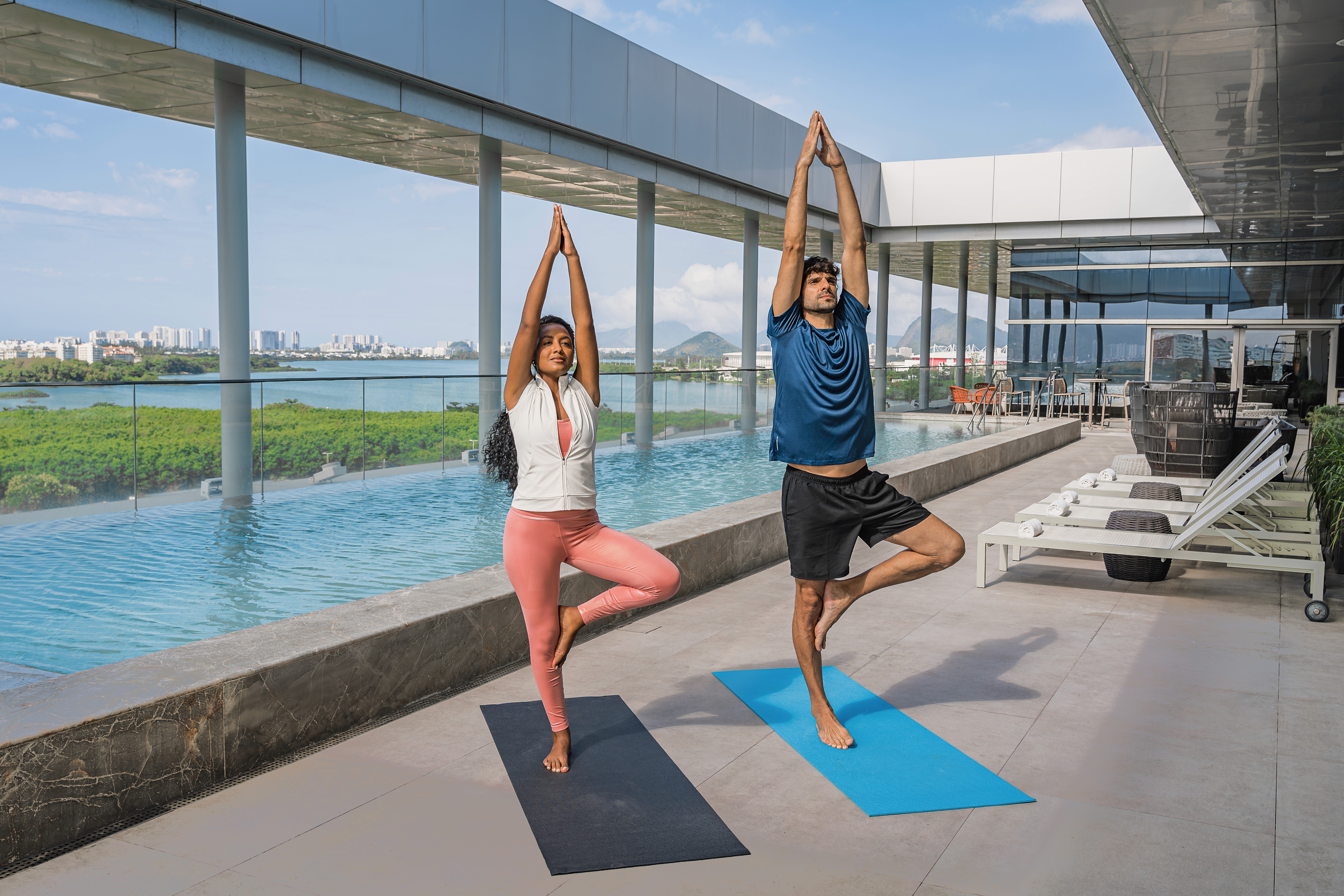 A atividade chamada Experiência Bem-estar acontece no domingo, 15 de março, às 5h, no 9º andar do hotel, com vista para a Barra da Tijuca, Lagoa de Jacarepaguá e Pedra da Gávea. A aula tem duração de duas horas e será conduzida pelo professor Paulo Andrade, do estúdio Exhale.