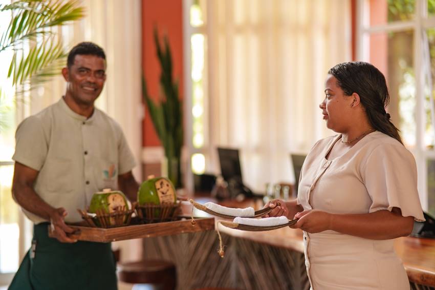 Desde o primeiro contato, equipes dedicadas atuam na personalização da estada, sugerindo passeios, ajustando horários e organizando detalhes de acordo com o perfil do visitante. Na chegada, o acolhimento se traduz em gestos objetivos: welcome drink exclusivo, toalhas refrescantes e uma recepção alinhada à cultura local. Nas acomodações, arranjos florais, bilhetes manuscritos e cocadas artesanais produzidas na região reforçam a proposta de cuidado contínuo.