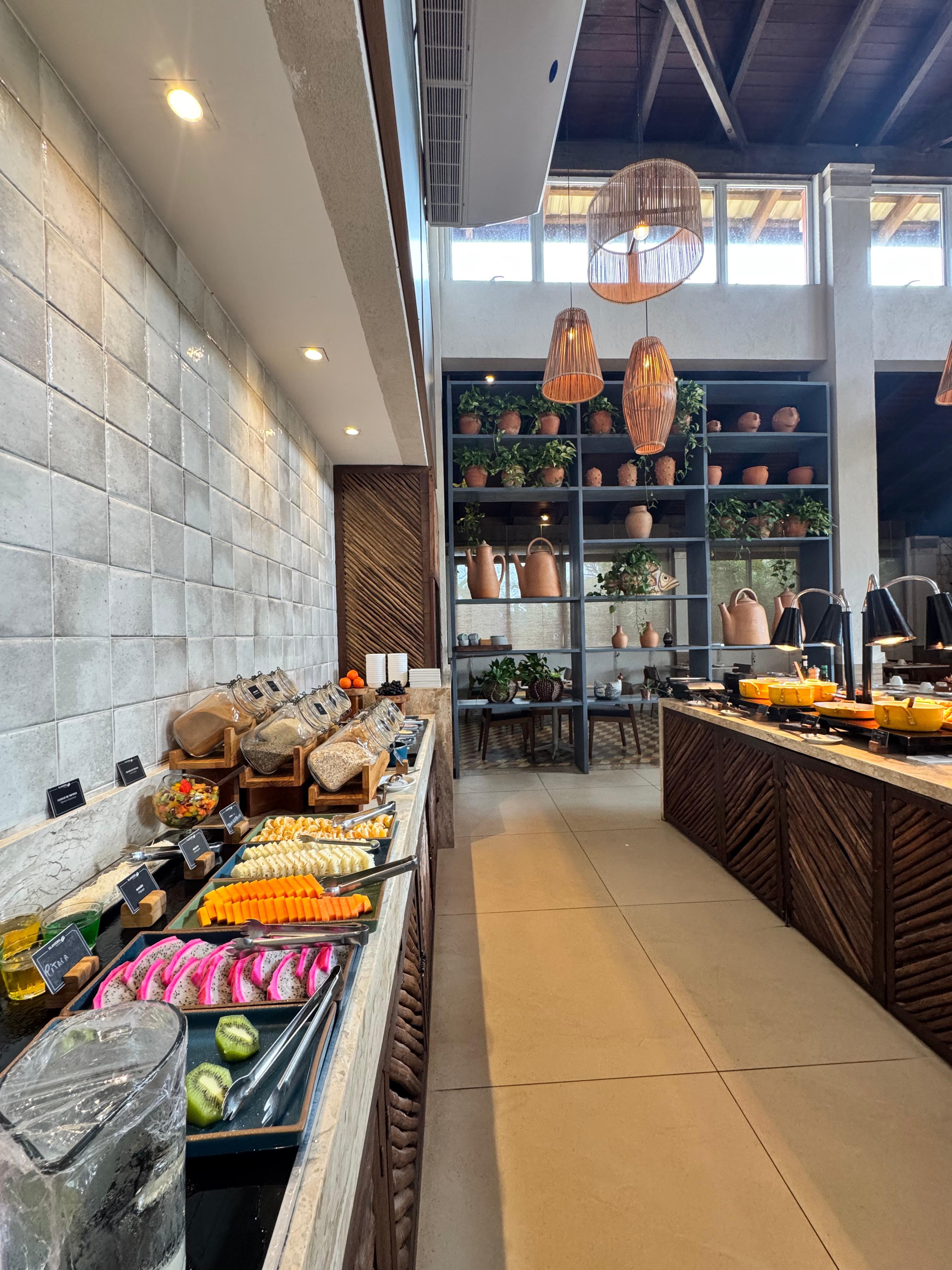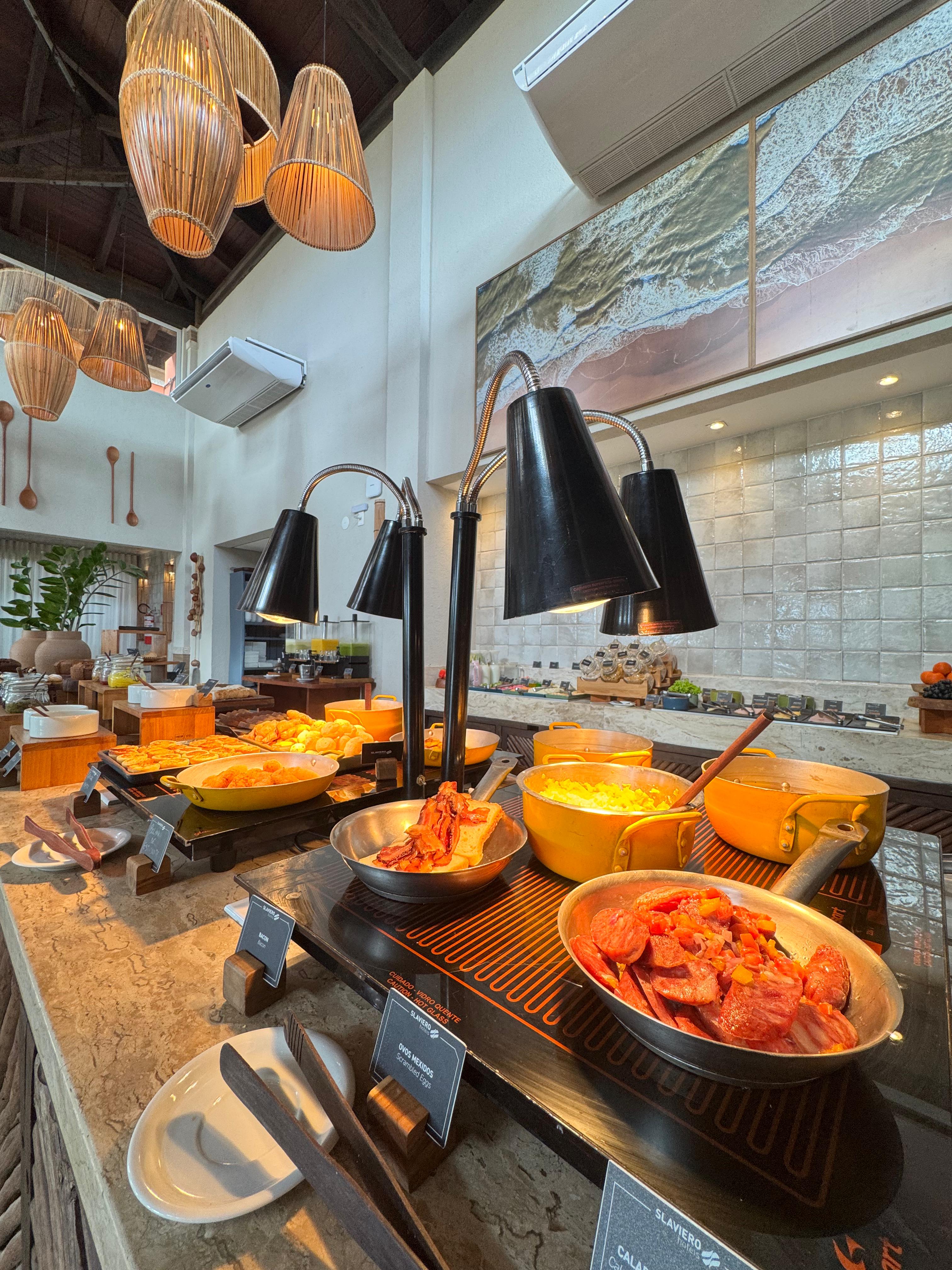 A experiência sensorial se estende à apresentação, com louças que destacam cores e texturas dos alimentos, flores frescas nas mesas e o aroma do café passado na hora. O serviço segue uma condução discreta e atenta, em sintonia com a hospitalidade proposta pelo hotel desde a chegada, marcada por rituais como o uso de toalhas aromatizadas e a oferta de coco fresco.