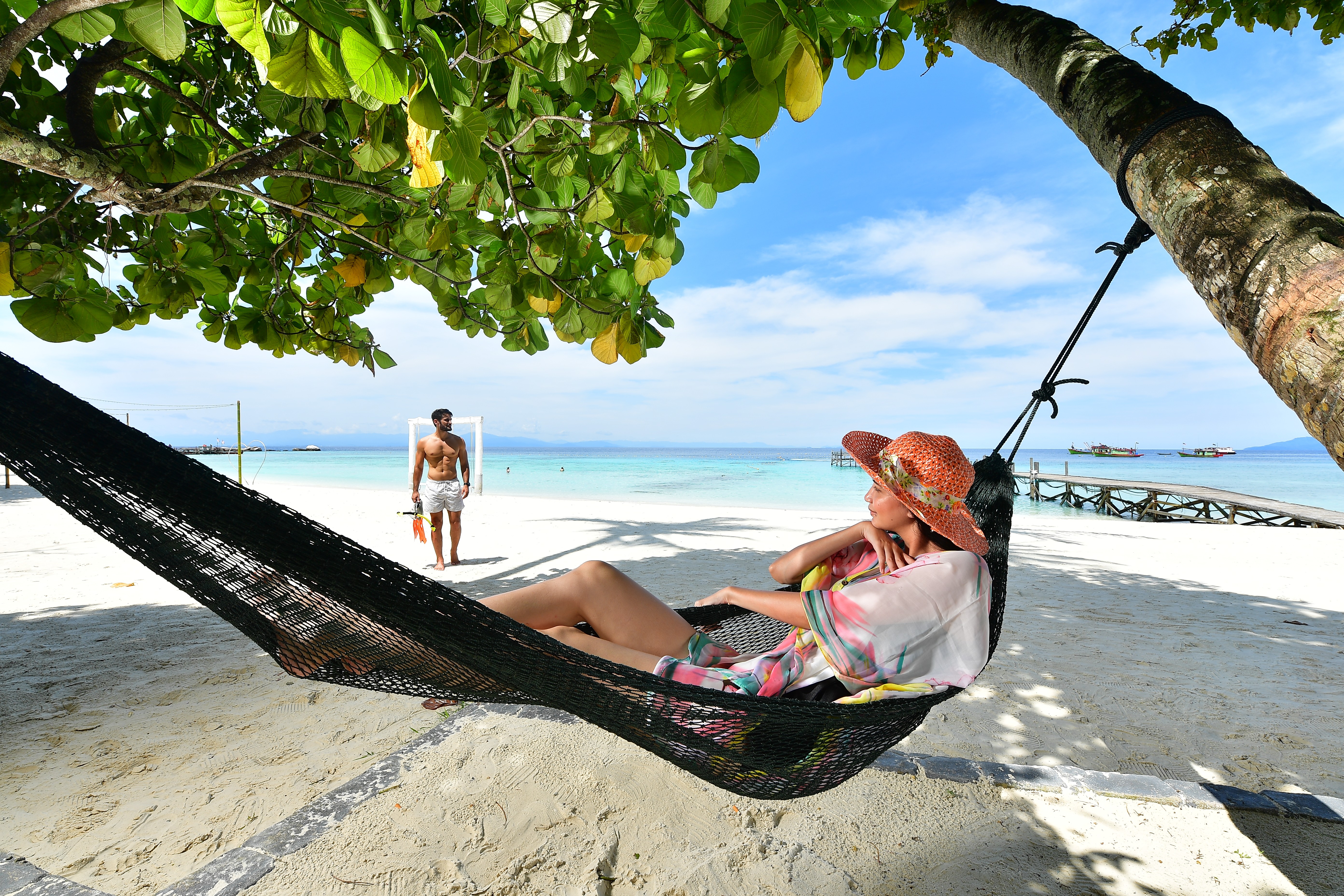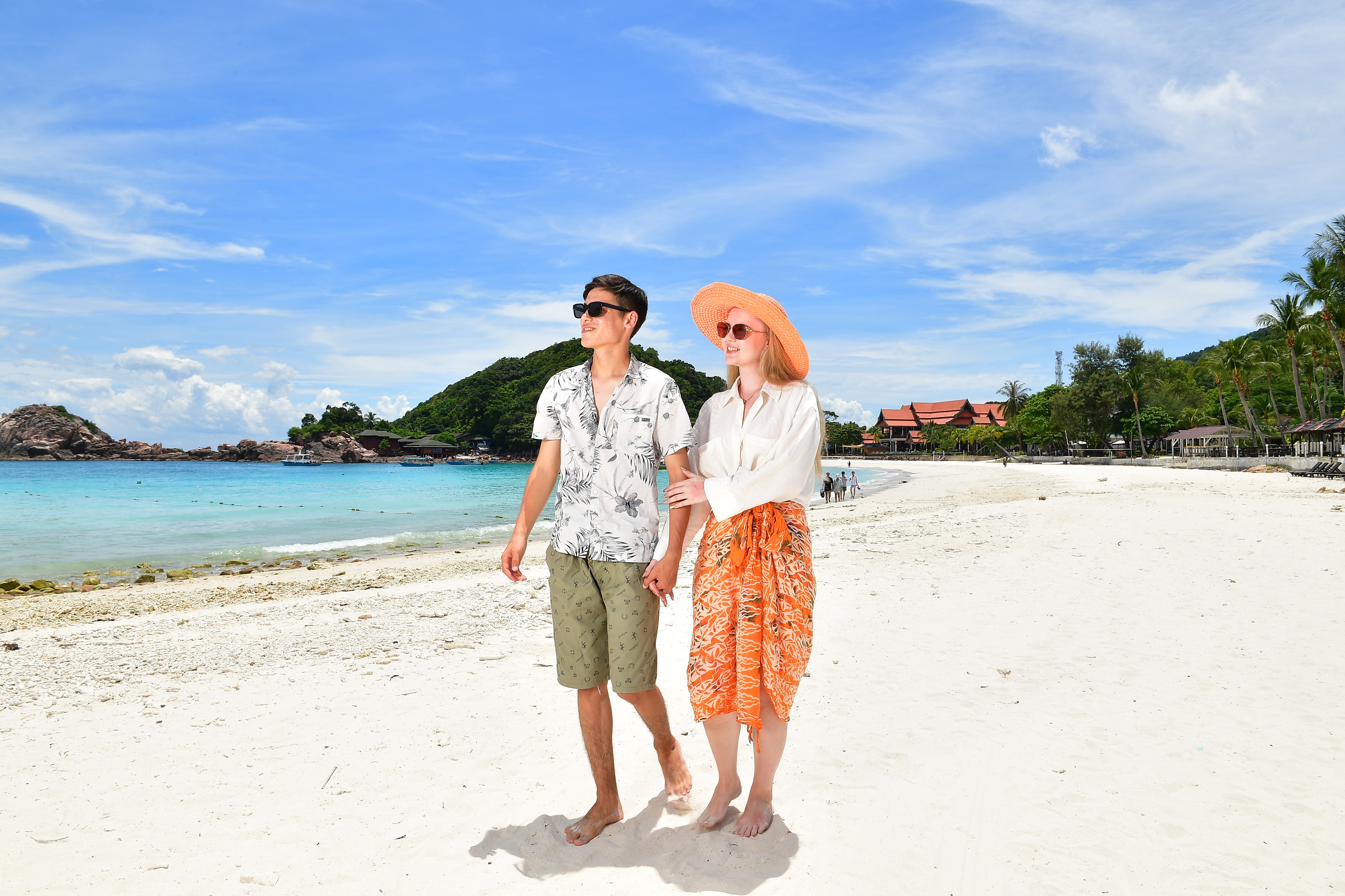 Redang, conhecida por praias amplas e águas em tons intensos de azul, oferece recifes rasos ideais para snorkeling e um ambiente indicado para luas de mel. O cenário privilegia descanso e experiências à beira-mar.
