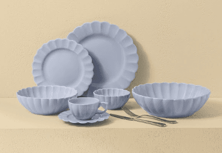 Entre os itens disponíveis estão jogos de pratos, canecas e boleira, além de aparelhos completos de jantar e chá das linhas complementares.