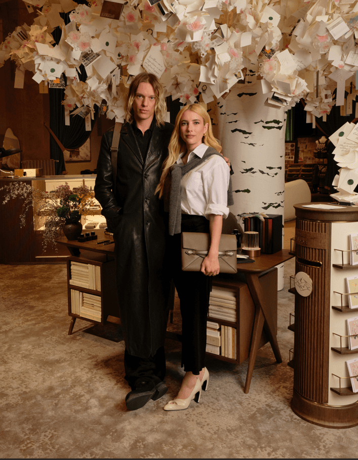 A Montblanc apresentou uma prévia de suas coleções de couro Outono/Inverno 2026 durante a Milão Fashion Week, em um showroom montado no Salone dei Tessuti. O encontro reuniu convidados como Emma Roberts, Jamie Campbell Bower e os embaixadores da marca Zinedine Zidane e Waris Ahluwalia, em uma experiência que reforça a narrativa da Maison sobre viagem, escrita e criatividade.
