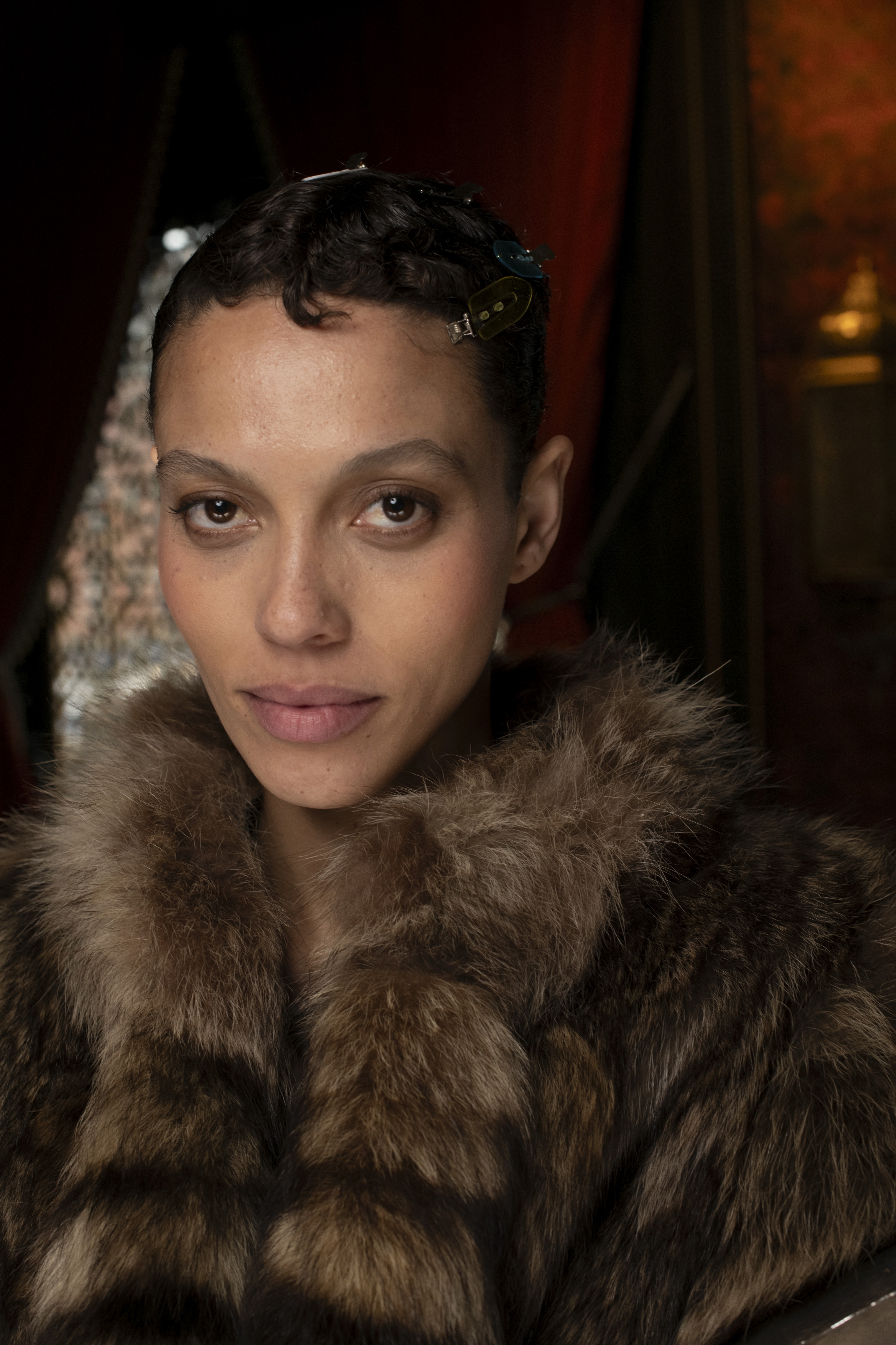 A maquiagem apareceu com aspecto real e polido, enquanto o olhar ganhou força com delineados evidentes, sombras mais escuras e aplicações criativas. A proposta reforça a valorização da beleza natural como ponto de partida, elevada por técnica e informação de moda. Conhecido por sua assinatura minimalista, o beauty artist aprofundou essa identidade nesta edição.