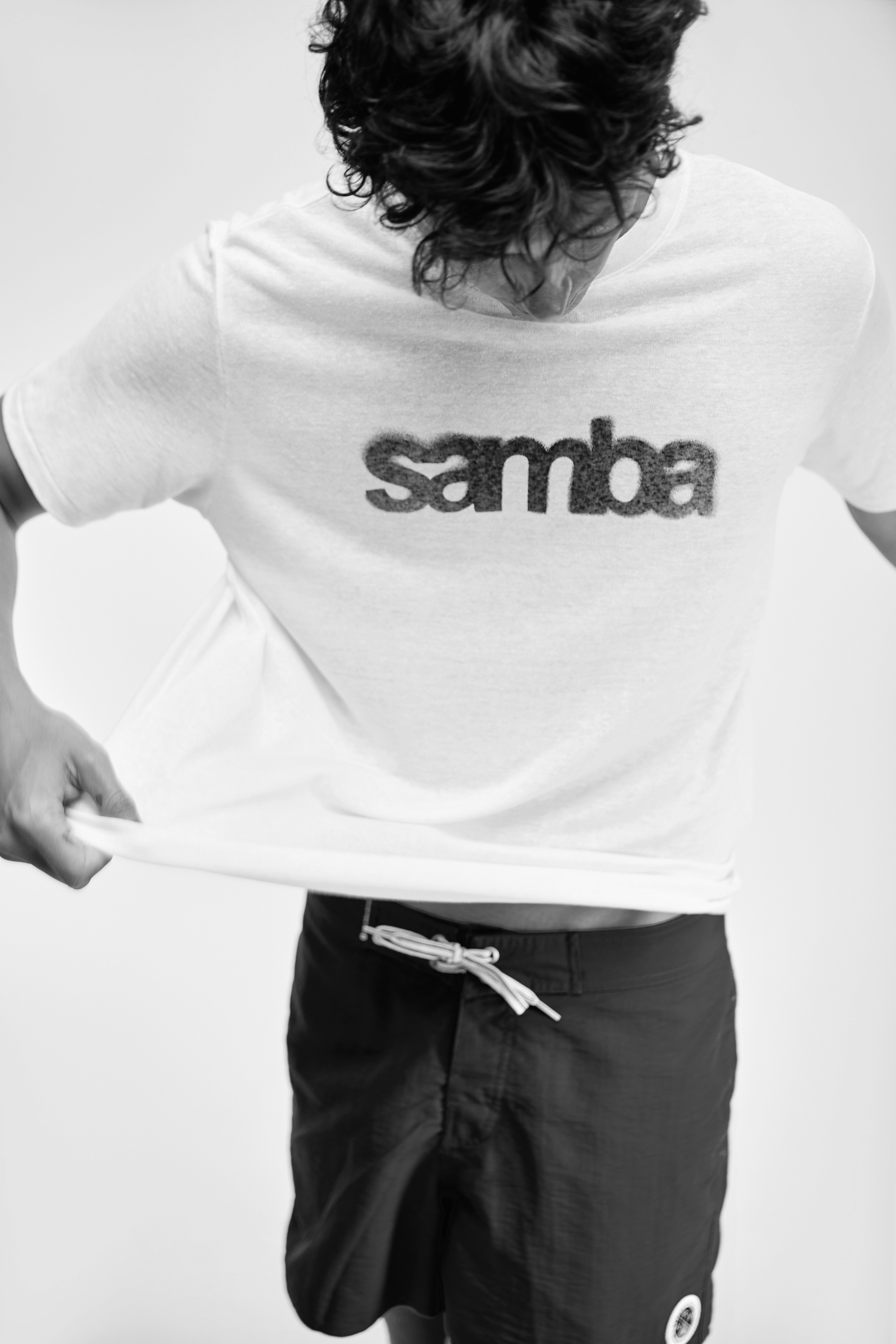 O lançamento inclui ainda camisas de linho com bordados de arabescos de abacaxi, kaftan de tule com estampa em degradê e aplicação de Swarovski na gola, além de colete smoking com lateral exposta, regulagem e gravata borboleta. A clássica t-shirt SAMBA também integra a coleção, confeccionada em Viscose-e, material produzido a partir de madeiras de reflorestamento e manejo sustentável certificados pelo FSC, PEFC e EU Ecolabel. O processo reduz em 50% o uso de água e a emissão de CO2 em comparação à viscose tradicional.