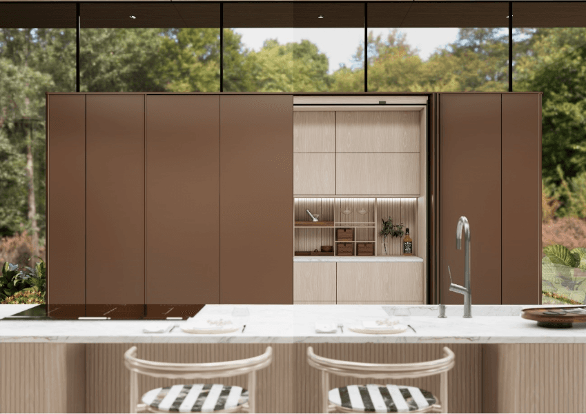 Entre os destaques, a Marel participa da Eurocucina com a coleção Per La Vita, desenvolvida a partir de princípios de neuroarquitetura. Dividida em três linhas, a proposta explora formas, texturas e soluções multifuncionais que dialogam com o bem-estar e a adaptação dos espaços ao cotidiano.