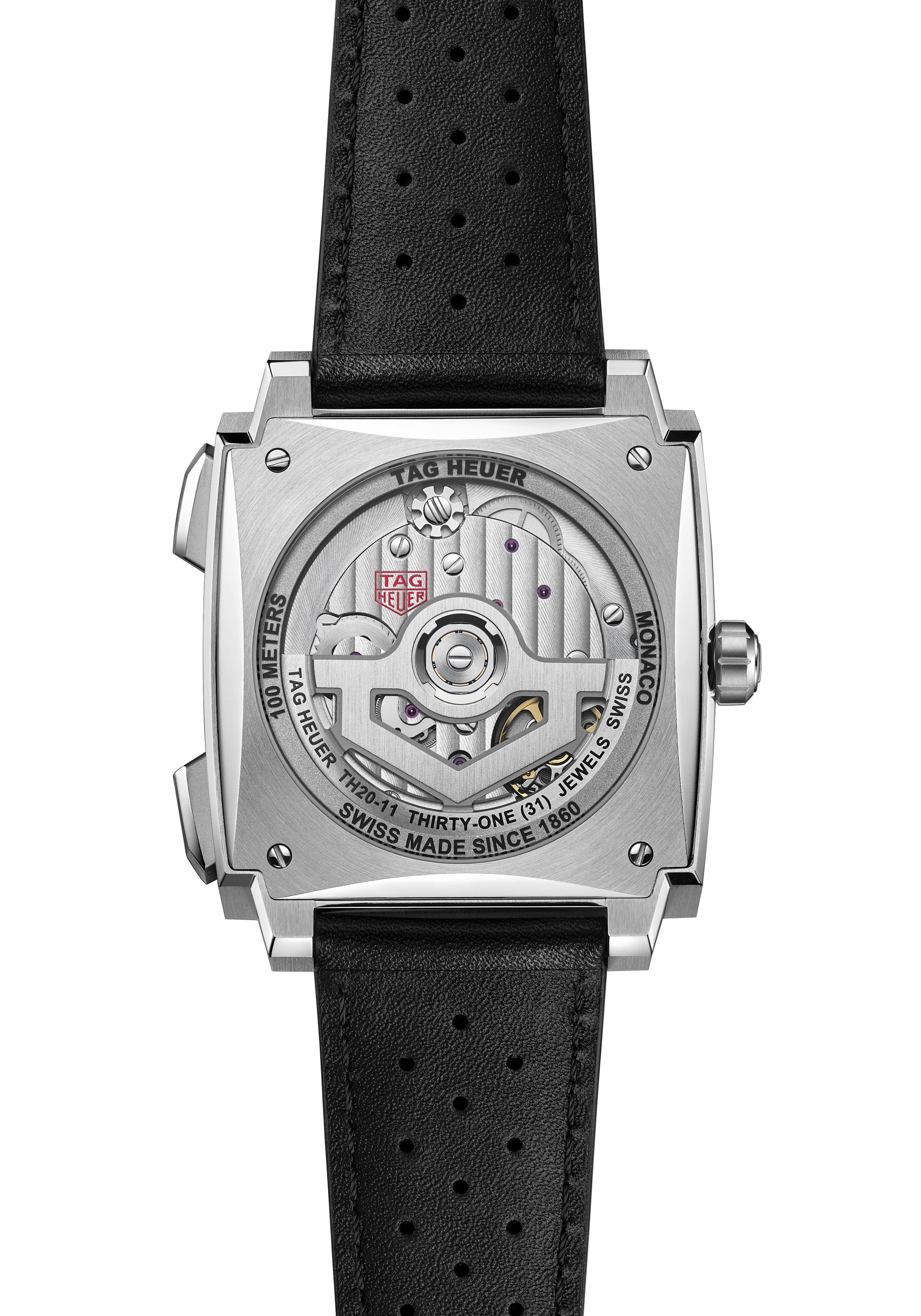 O novo Monaco Chronograph incorpora o calibre automático TH20-11, desenvolvido internamente. Com reserva de marcha de 80 horas e garantia de cinco anos, o movimento representa uma evolução direta do TH20-00, com melhorias em confiabilidade e desempenho.
