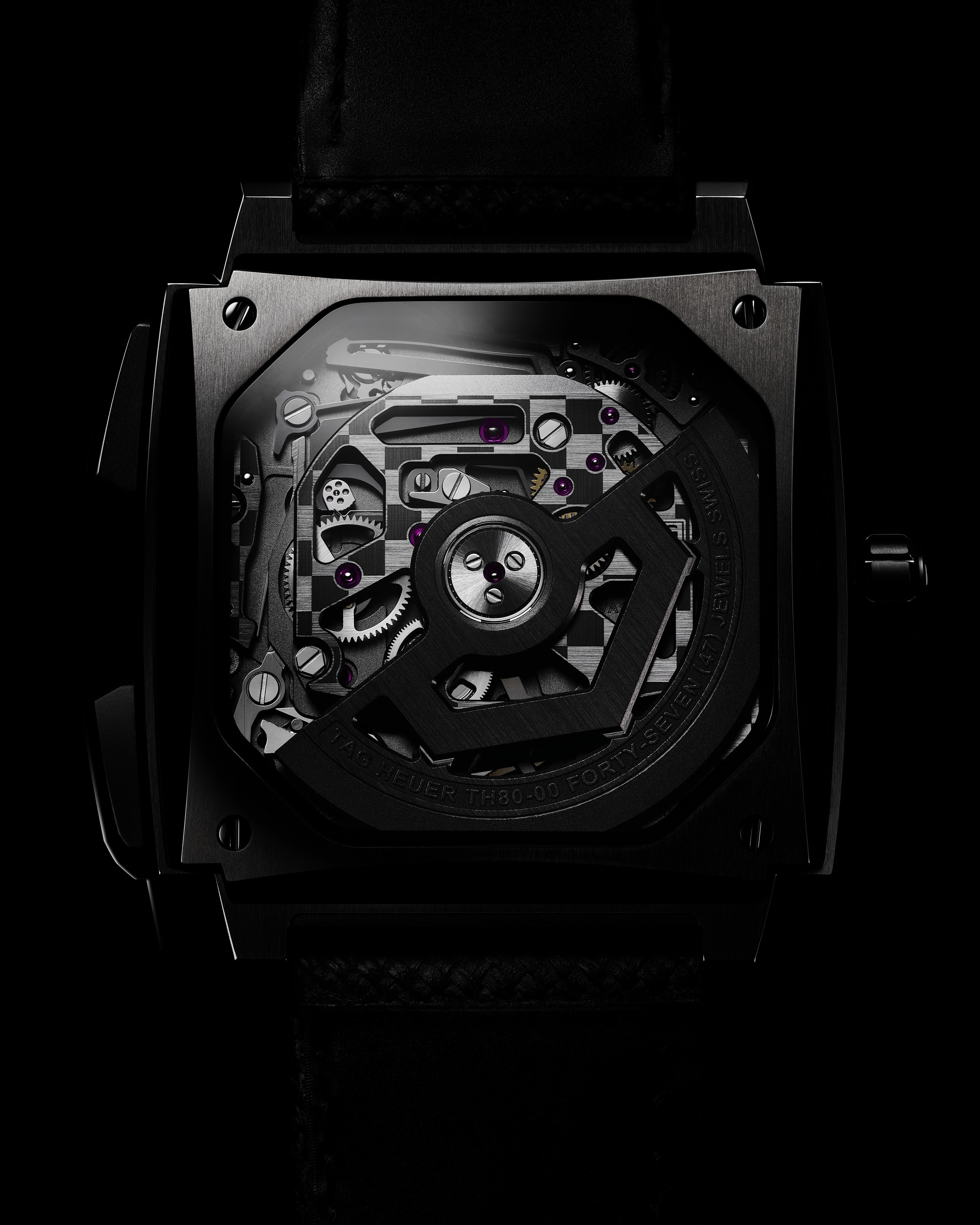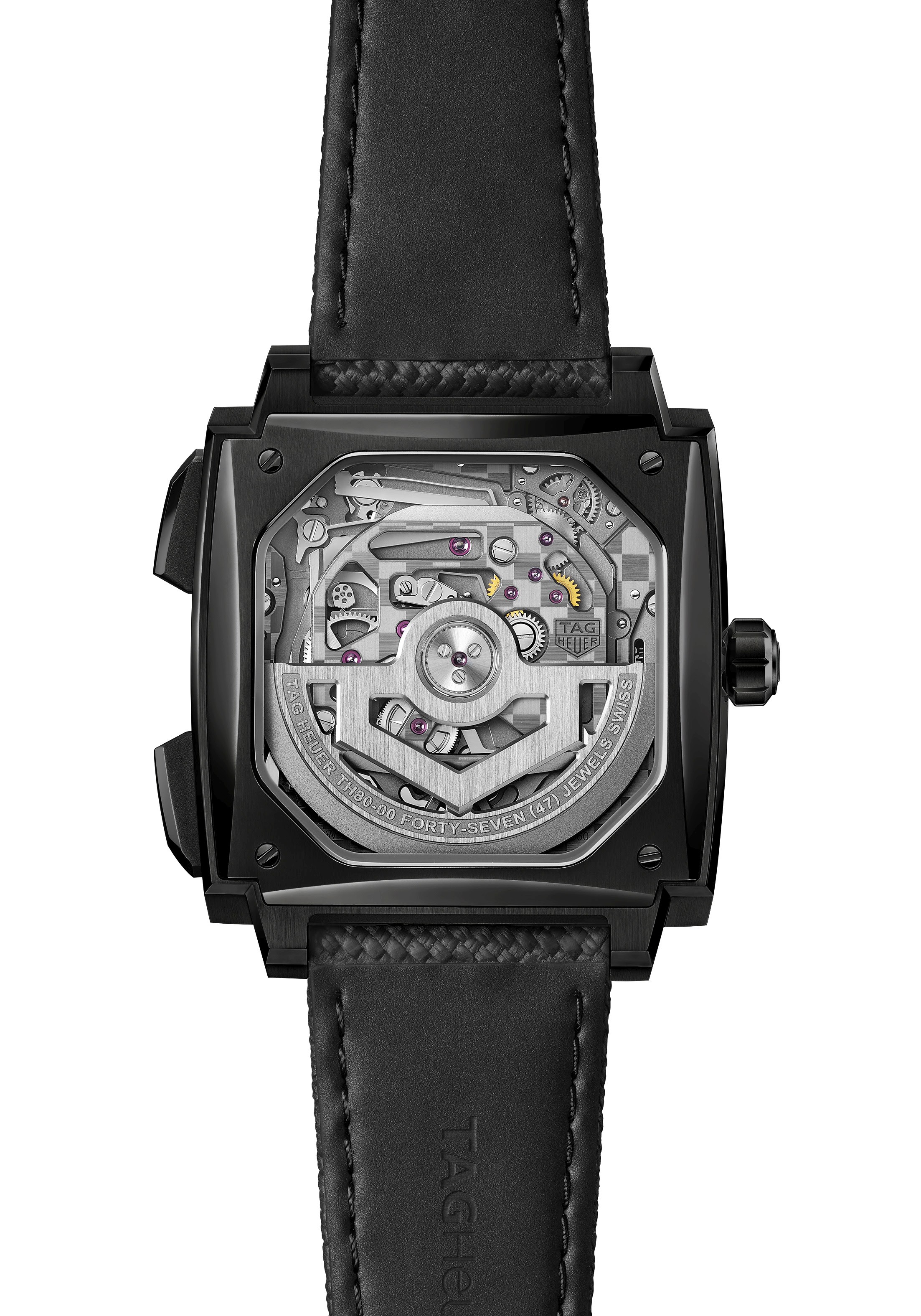 O Monaco Evergraph é impulsionado pelo calibre TH80-00, desenvolvido com um mecanismo de cronógrafo que elimina atrito e desgaste ao substituir alavancas e molas tradicionais por componentes flexíveis biestáveis. O sistema foi desenvolvido ao longo de cinco anos pelo laboratório da marca e utiliza tecnologia LIGA para garantir precisão constante ao longo do tempo.