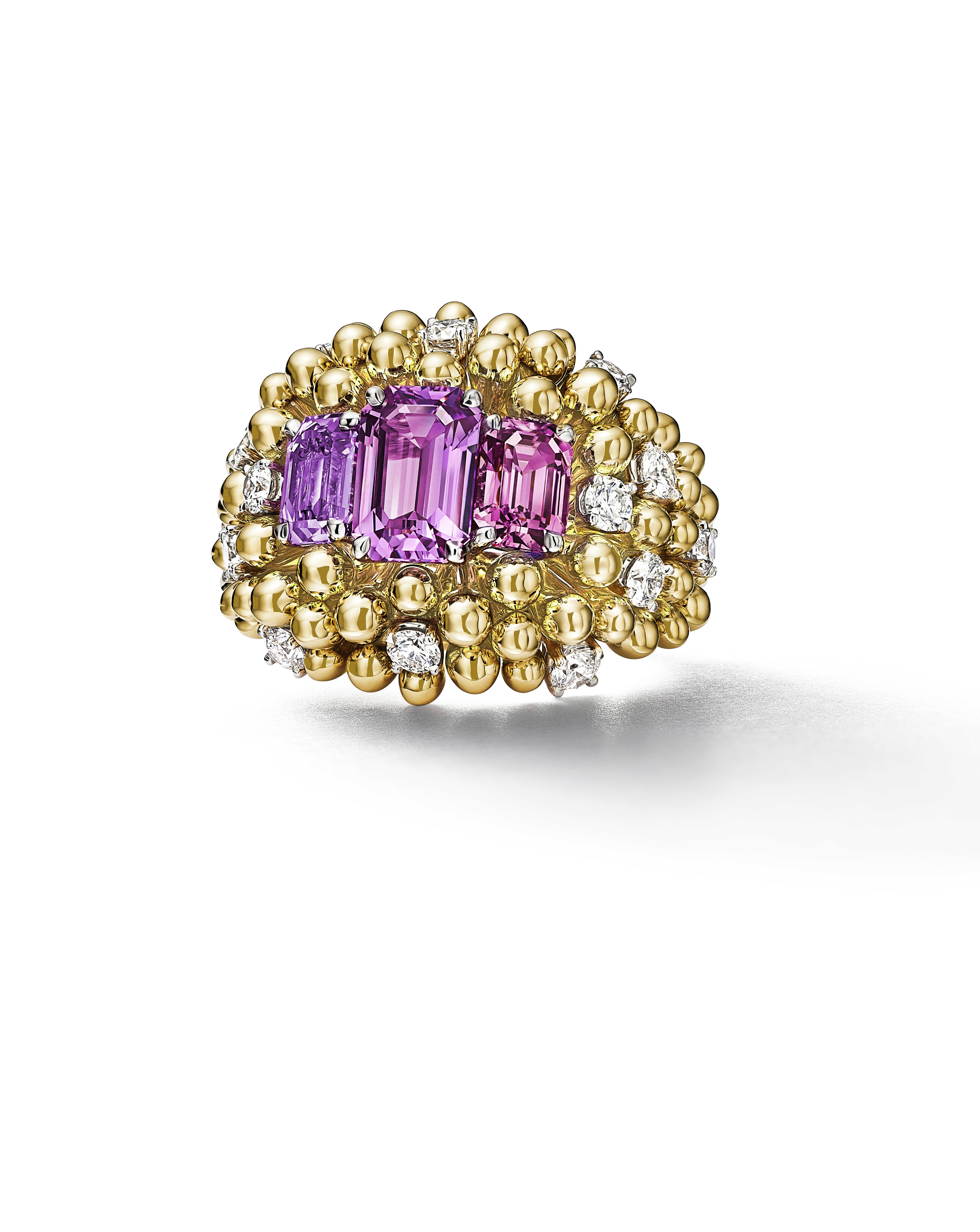 O capítulo Bee traz estruturas inspiradas em colmeias com diamantes ovais, incluindo um exemplar Tipo IIa com mais de 10 quilates. Em Jasmine, Marguerite e Bloom, a coleção desenvolve leituras florais com diamantes, kunzitas e safiras em composições que alternam entre platina e ouro amarelo.