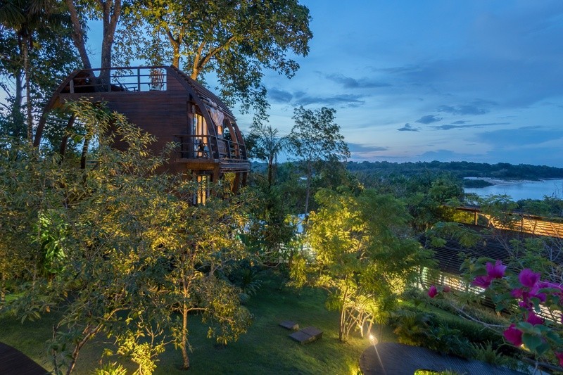Entre os destaques está o Mirante do Gavião Amazon Lodge, em Novo Airão, que utiliza madeira certificada e estruturas elevadas para reduzir impacto no solo e oferece expedições pelo Parque Nacional do Jaú.