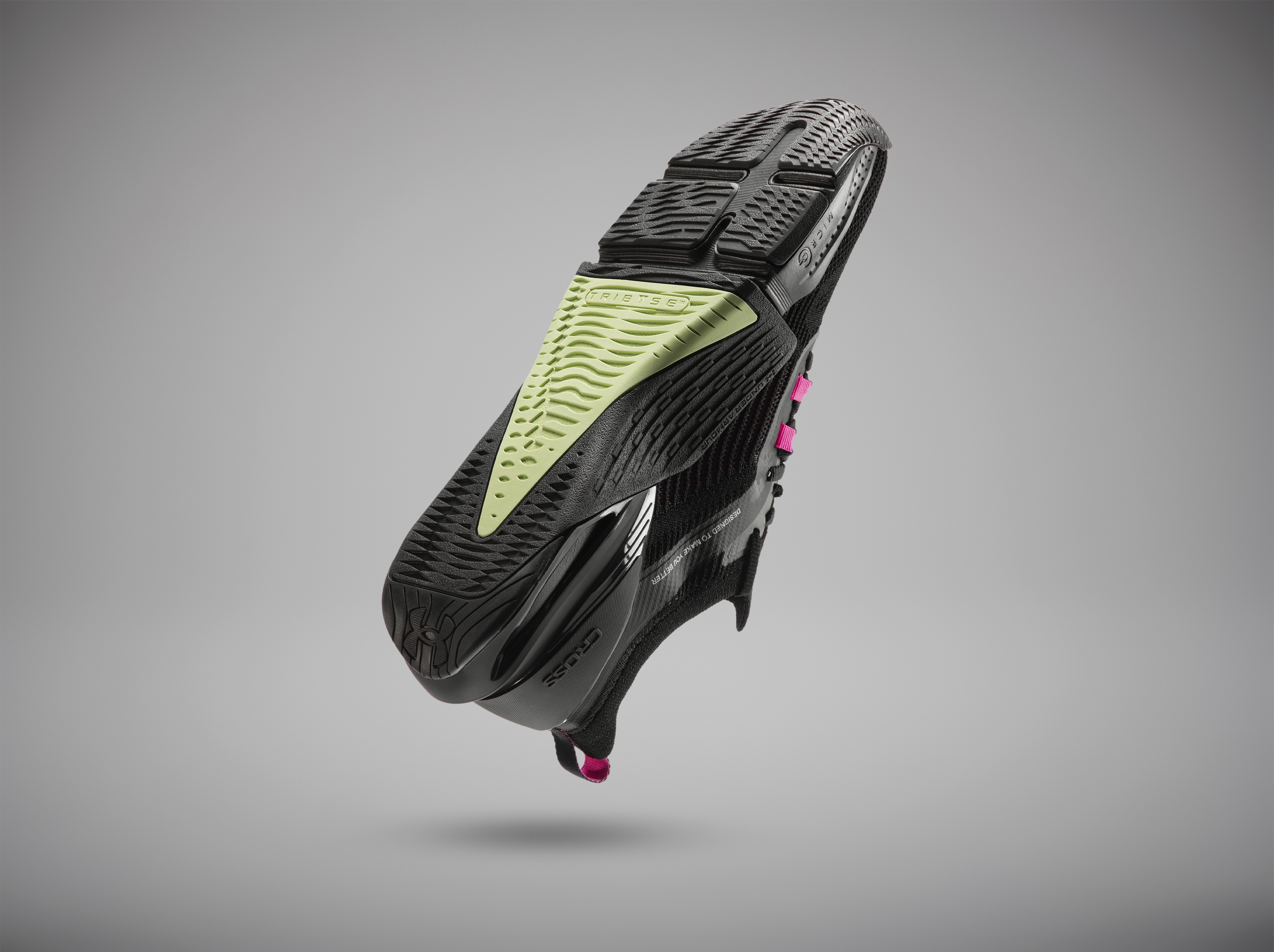 Desenvolvida pela Under Armour em 2018, a tecnologia Tribase foi criada para maximizar o contato do calçado com o solo e oferecer suporte durante treinos intensos. Identificada pelo triângulo presente na base do solado, a estrutura reduz pontos de instabilidade e oferece apoio consistente em movimentos multidirecionais.