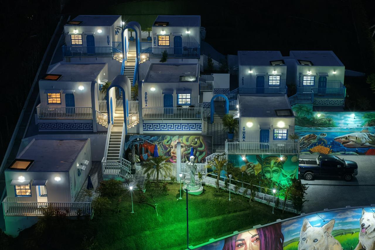 O Vila Grega Hotel foi concebido como um projeto de hospedagem intimista e conta com apenas oito suítes temáticas. Cada acomodação recebe o nome de uma divindade da mitologia grega e possui ambientação própria inspirada nesses personagens.