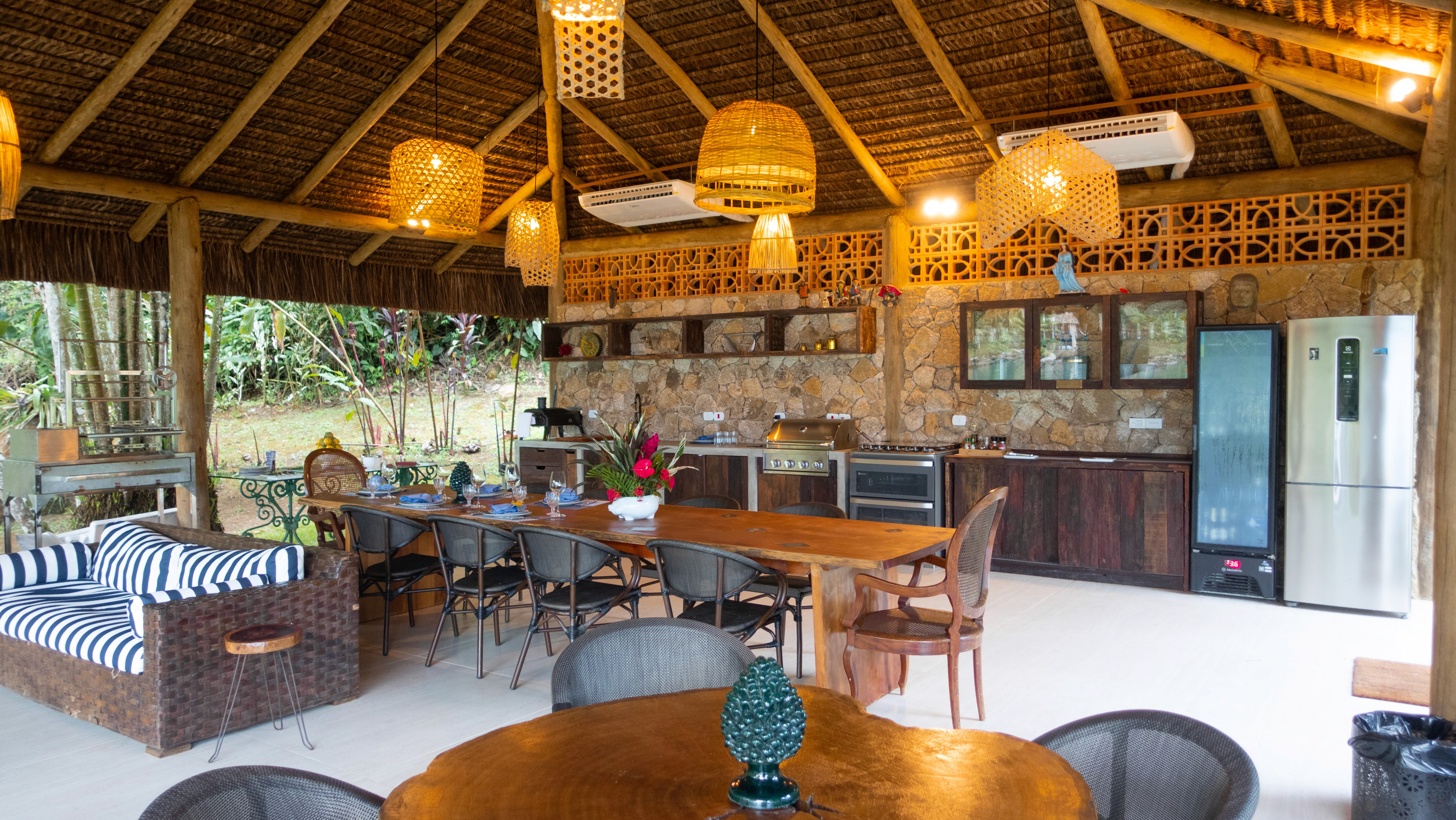 A Villa Bom Jardim mantém proposta que combina elementos da estética caiçara com conforto contemporâneo, em um projeto idealizado pela família Sandi.