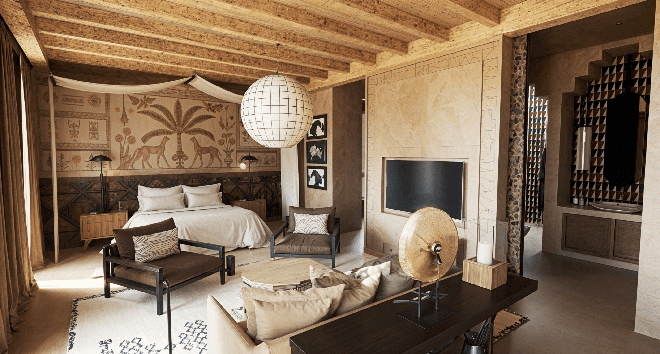 "A visão para esta propriedade é criar um destino que transmita uma sensação de profunda conexão com o ambiente ao redor, moldado pela terra e pelas tradições do design marroquino."