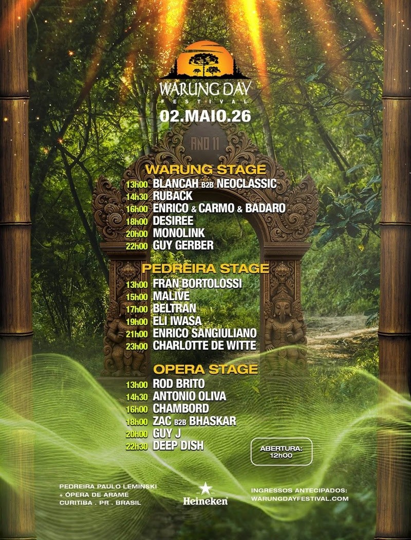 O Warung Day Festival anunciou a programação completa de sua edição 2026 e confirmou o retorno de um dos eventos mais conhecidos da música eletrônica no Brasil. A 11ª edição acontece no dia 2 de maio, na Pedreira Paulo Leminski e na Ópera de Arame, em Curitiba.