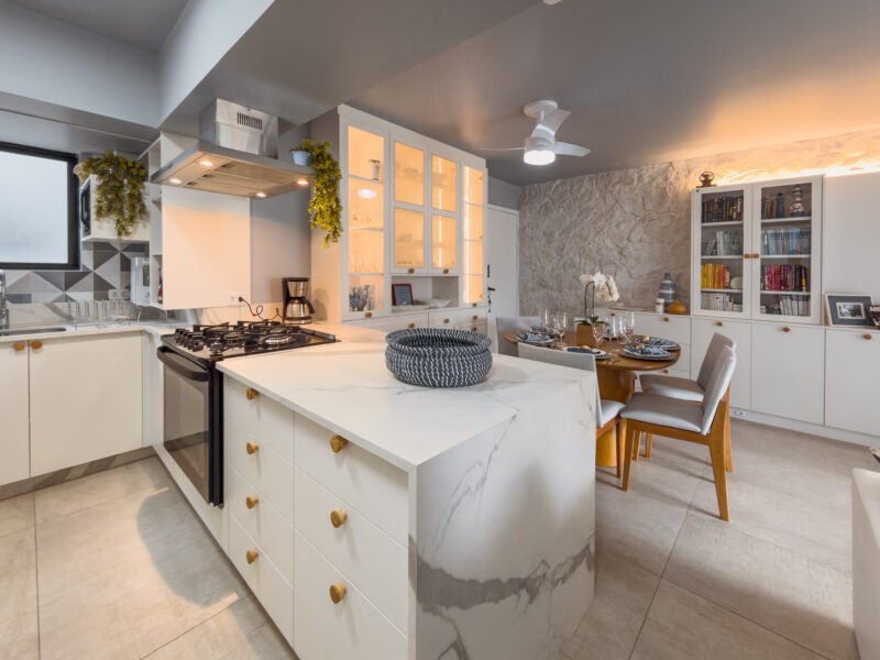 Entre os elementos em alta estão as luminárias pendentes. O termo registrou crescimento aproximado de 40% nas buscas em relação a 2025. A proposta é reduzir a luz central e apostar em iluminação de efeito. “Menos luz no teto e mais luz de efeito”, diz Priscila. “As pessoas perceberam que conseguem criar cenários mais aconchegantes só mudando o jeito como implementam a iluminação”.